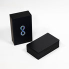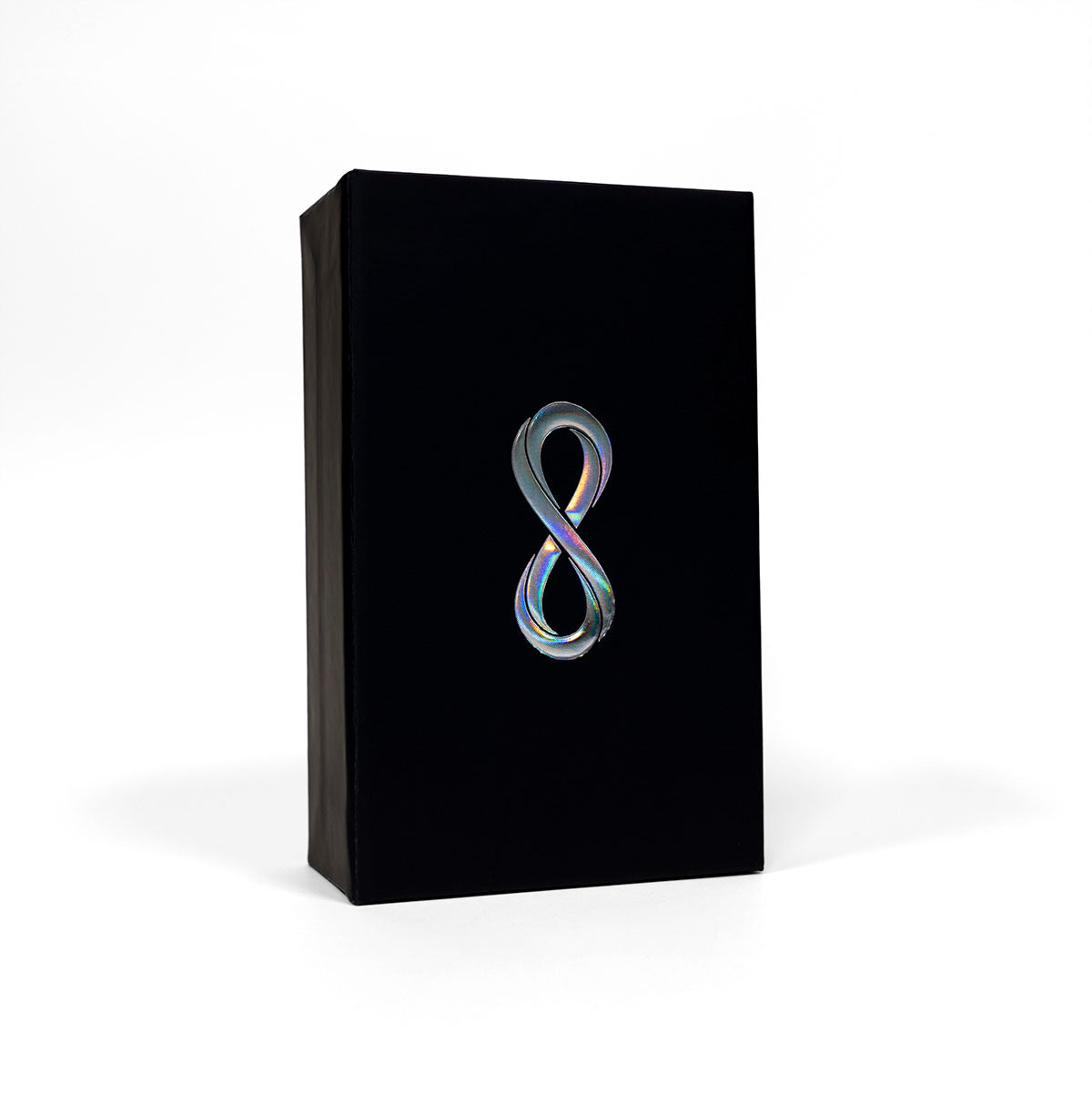 • Matte black box, with a holographic infinity loop on the cover