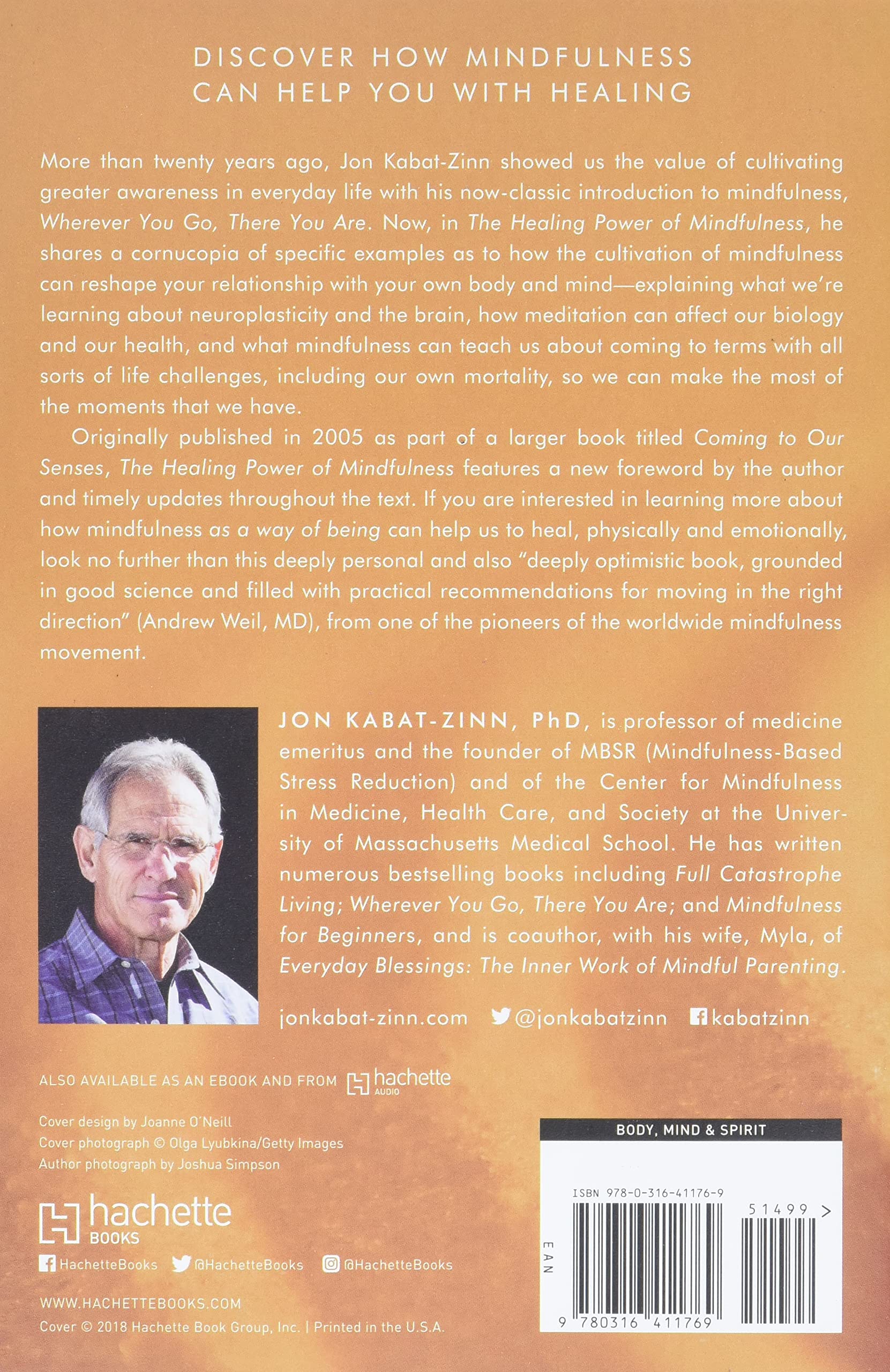 He is the author of numerous bestselling books about mindfulness and meditation: Full Catastrophe Living: Using the Wisdom of Your Body and Mind to Face Stress, Pain and Illness; Wherever You Go, There You Are: Mindfulness Meditation in Everyday Life; Coming to Our Senses: Healing Ourselves and the World Through Mindfulness; and Arriving at Your Own Door: 108 Lessons in Mindfulness. He is also co-author, with his wife Myla, of Everyday Blessings: The Inner Work of Mindful Parenting; and with Williams, Teasdale, and Segal, of The Mindful Way Through Depression: Freeing Yourself from Chronic Unhappiness Overall, his books have been translated into over thirty languages.