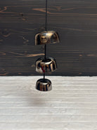 This set includes three small singing bowls with a high, clear tone that gently resonates when tapped with the enclosed beater.