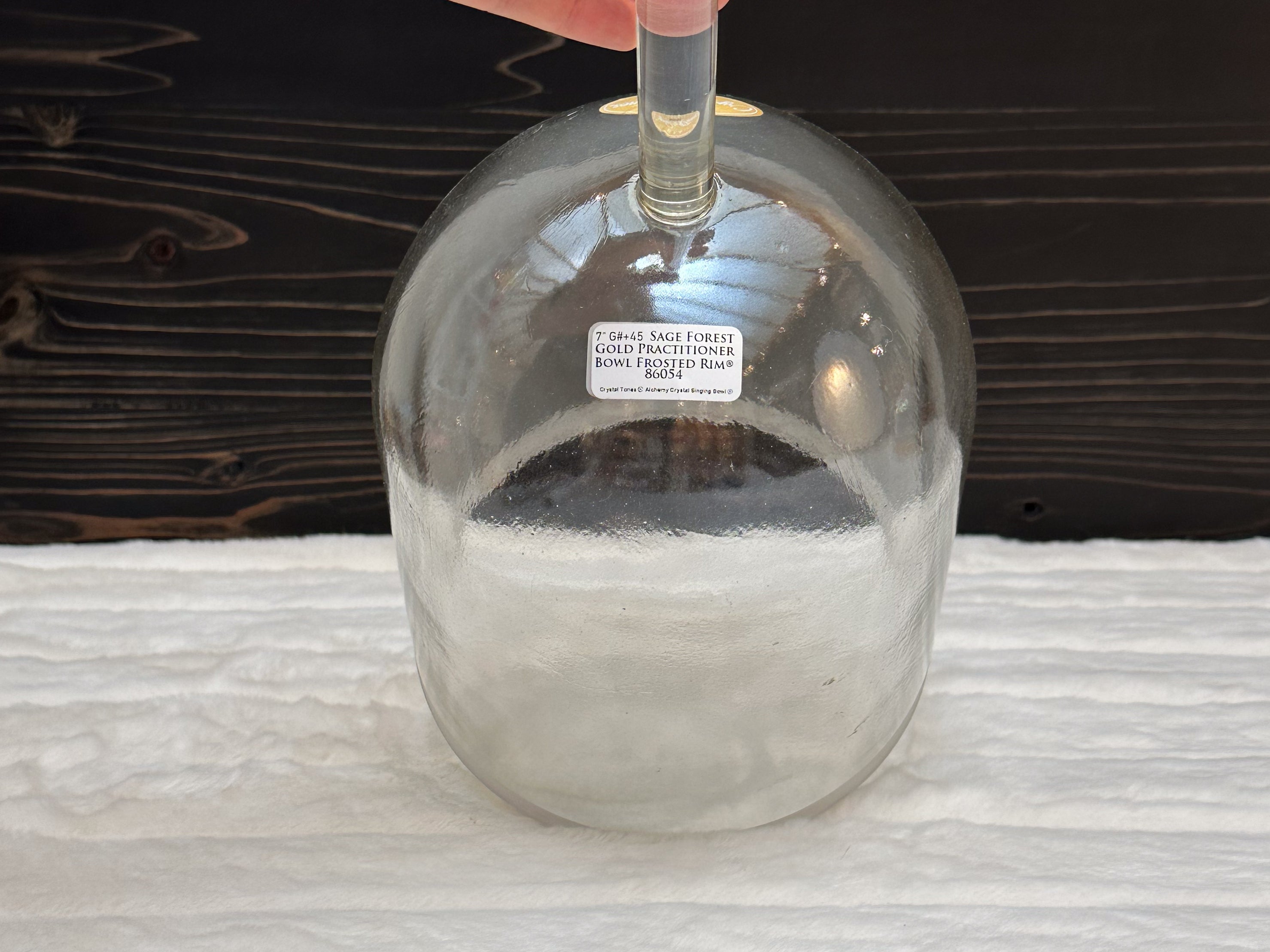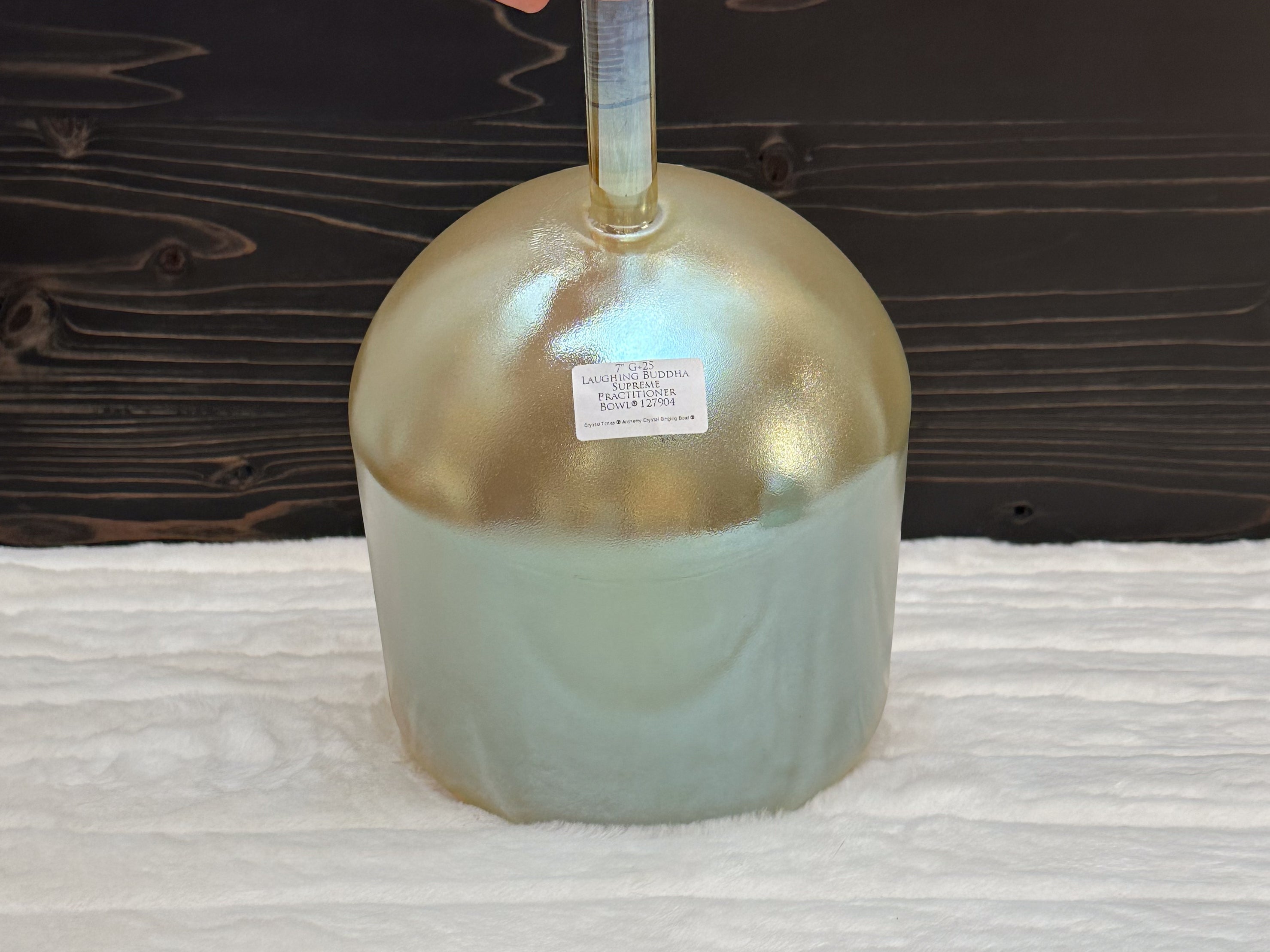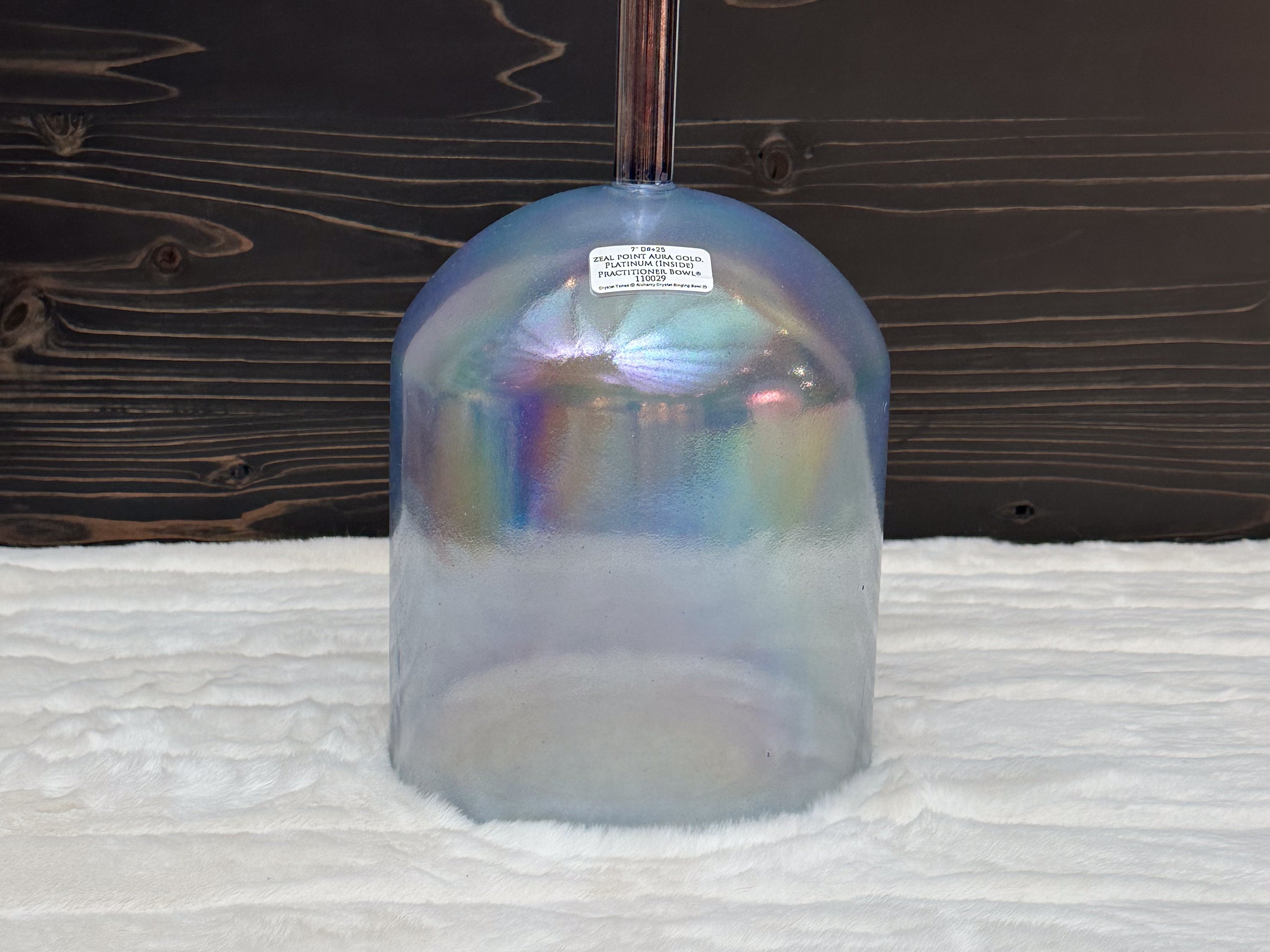 A Crystal Tones Practitioner Bowl is a handheld alchemy crystal singing bowl designed specifically for directed, intentional energy work. Unlike larger bowls that rest on the floor or a stand, practitioner bowls have a sturdy handle fused directly to the bowl, allowing the practitioner to walk around the room, work over the body, and deliver focused vibrational therapy with precision.