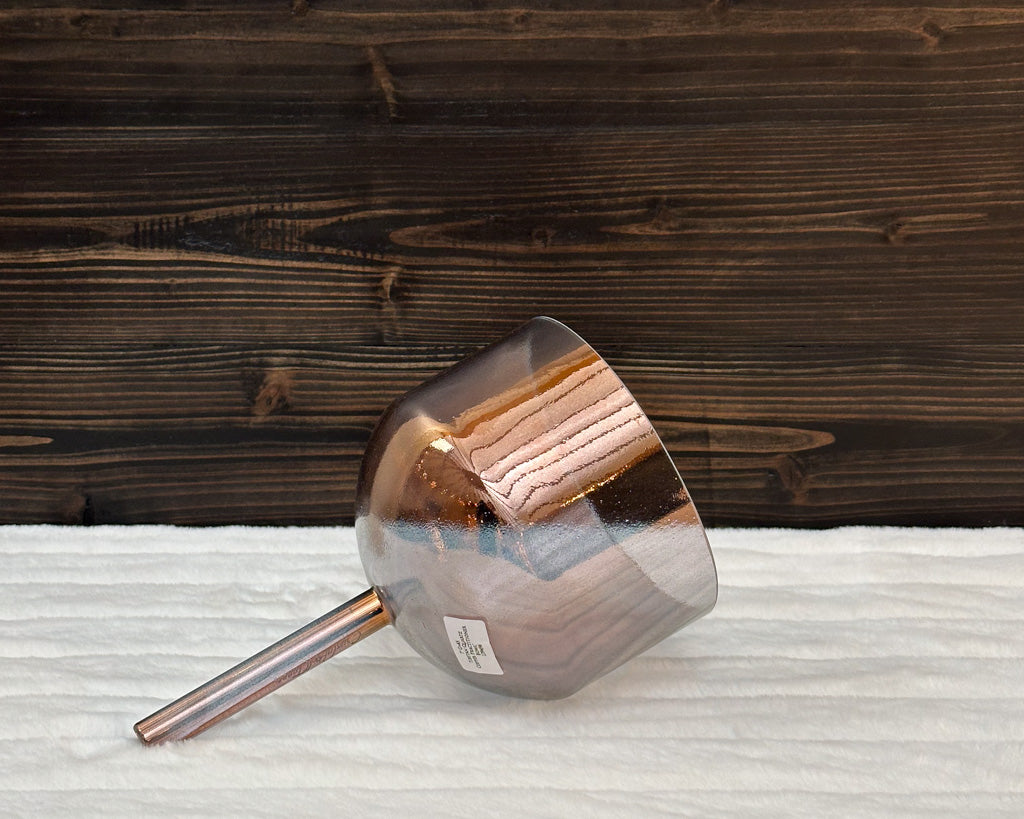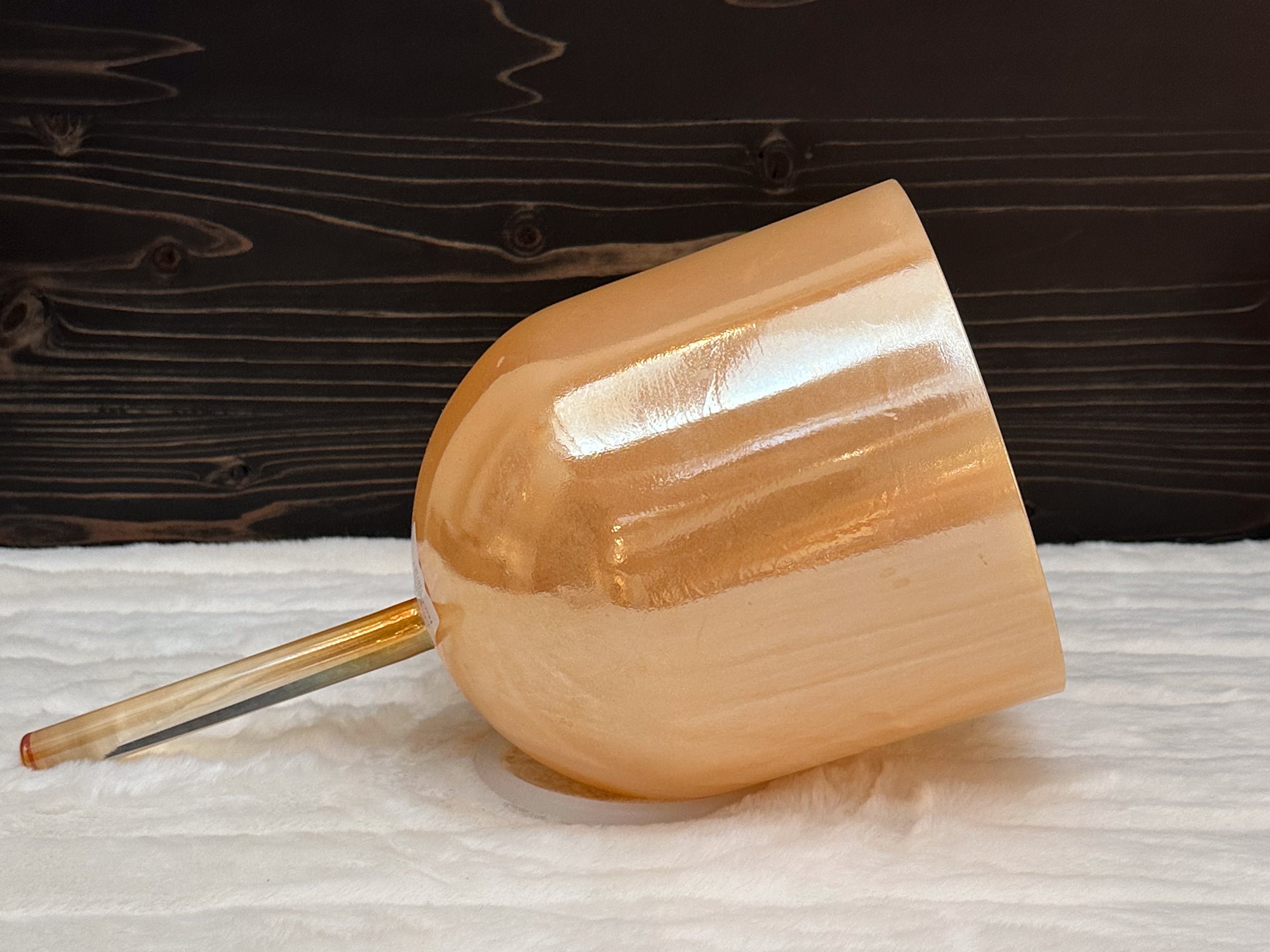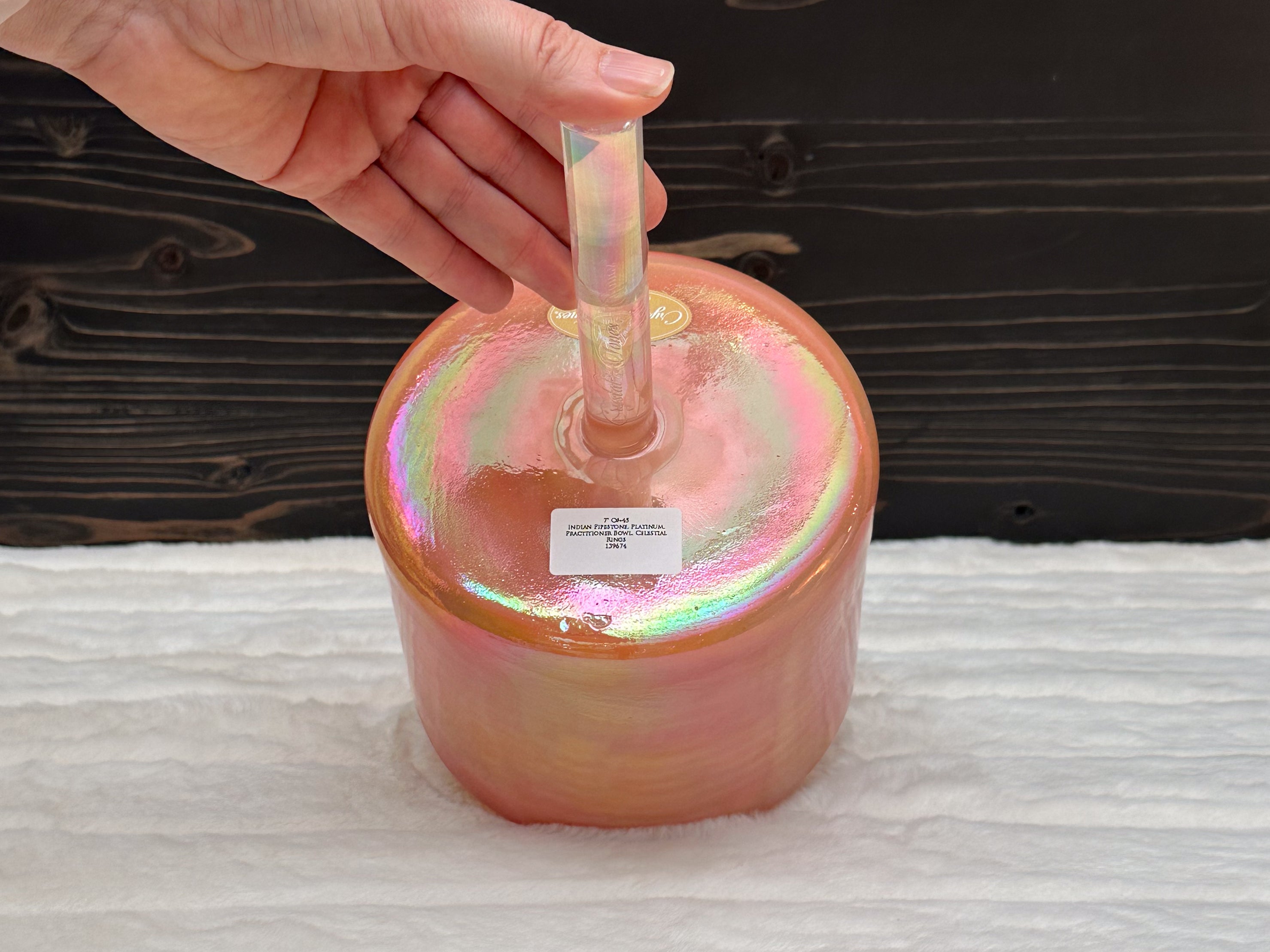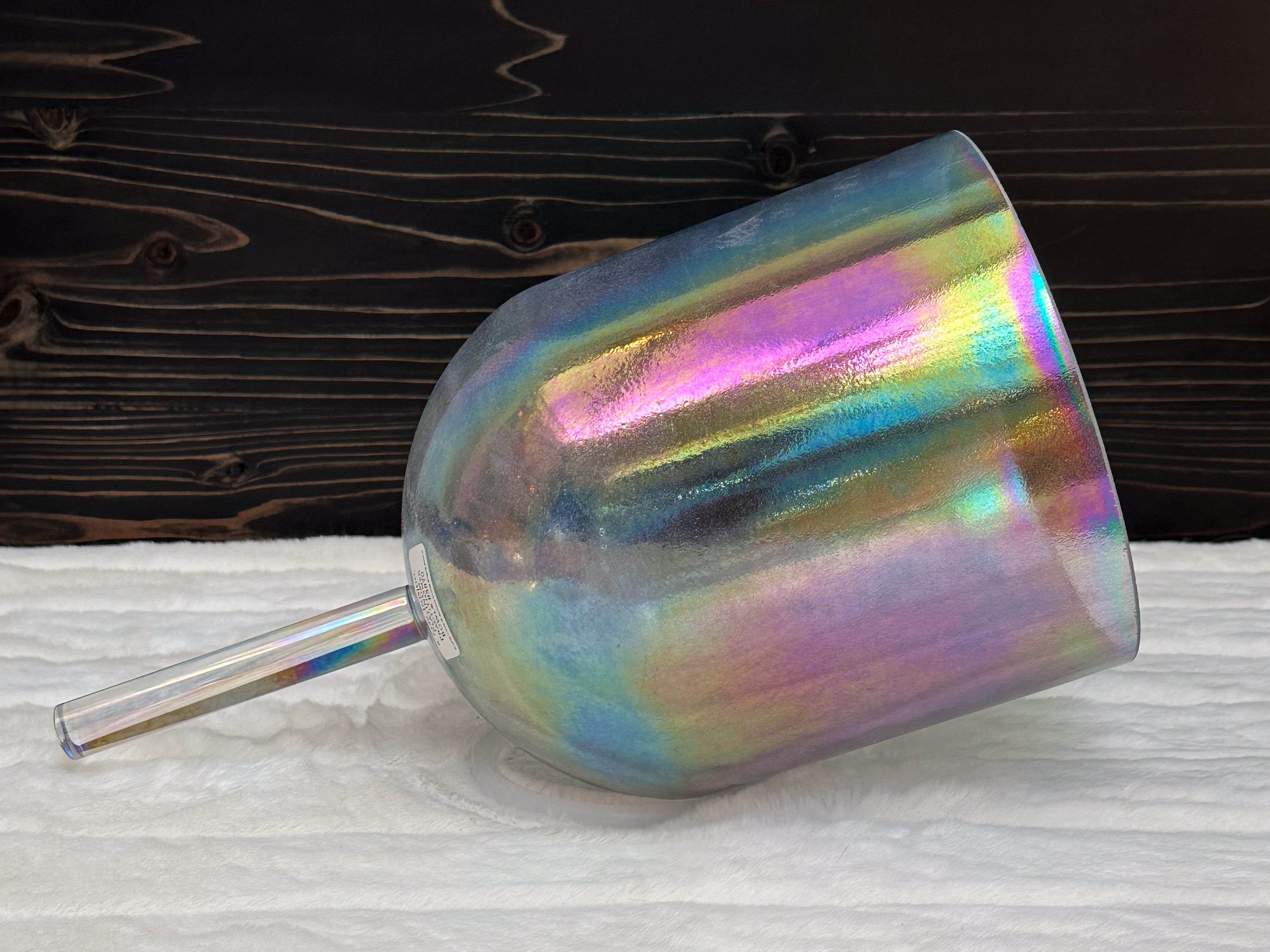 A Crystal Tones Practitioner Bowl is a handheld alchemy crystal singing bowl designed specifically for directed, intentional energy work. Unlike larger bowls that rest on the floor or a stand, practitioner bowls have a sturdy handle fused directly to the bowl, allowing the practitioner to walk around the room, work over the body, and deliver focused vibrational therapy with precision.