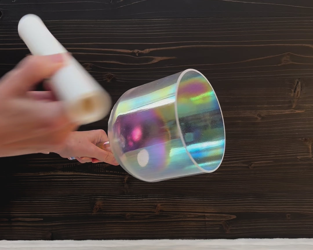 Pastel rainbow elegance is achieved in the Yin energy Platinum Bowl that stimulates the Divine Feminine, relieves stress and depression, and aligns the intuitive emotional body. This stunning alchemical bowl unifies astral and physical body fields in a sonic opalescent rainbow bath - a super harmonizer/balancer. It has a calming, steadying, grounding effect for perfect attunement resonance.