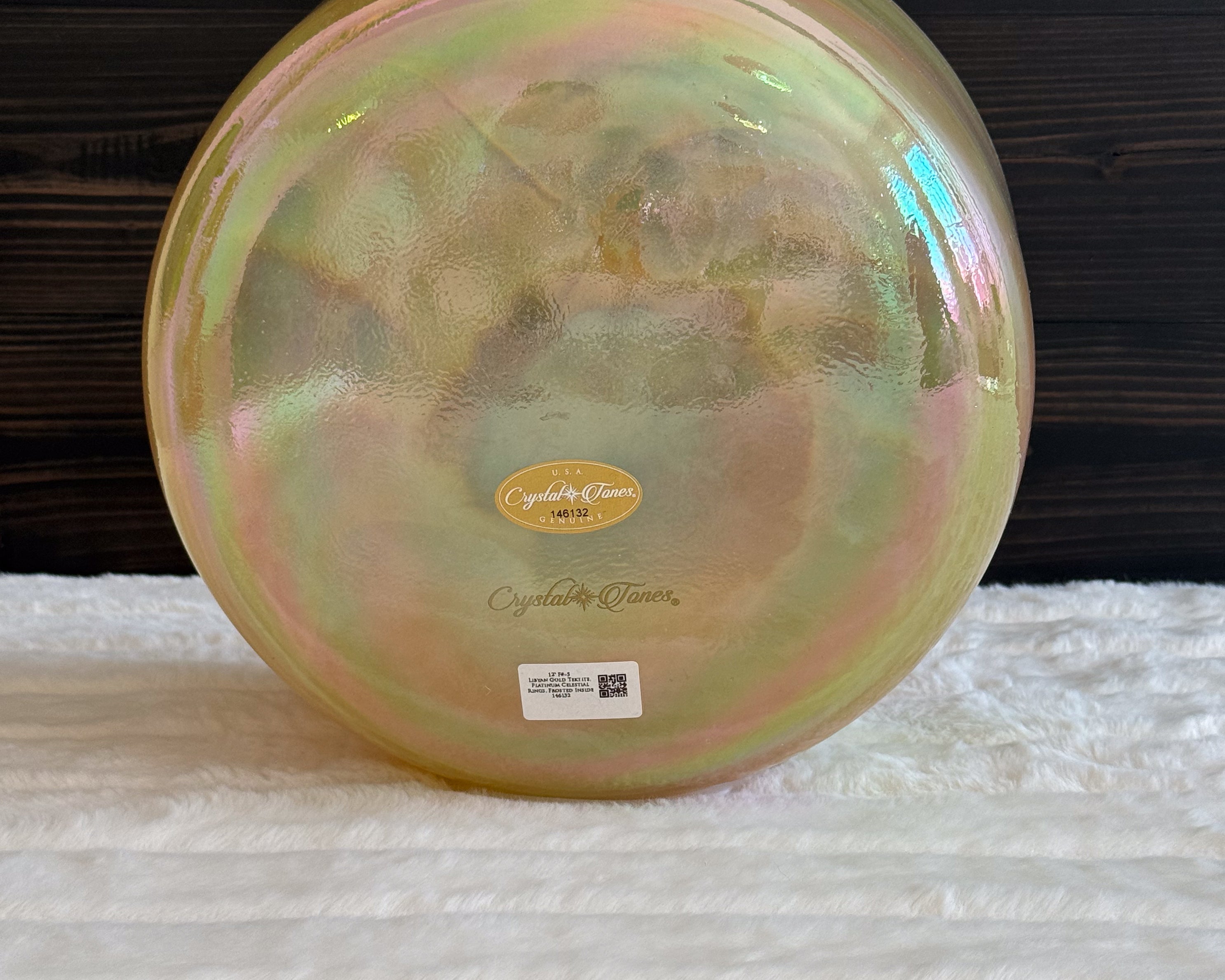 12" F#+5 Libyan Gold Tektite, Platinum Celestial Rings, Frosted Inside, Crystal Tones® Alchemy Singing Bowl