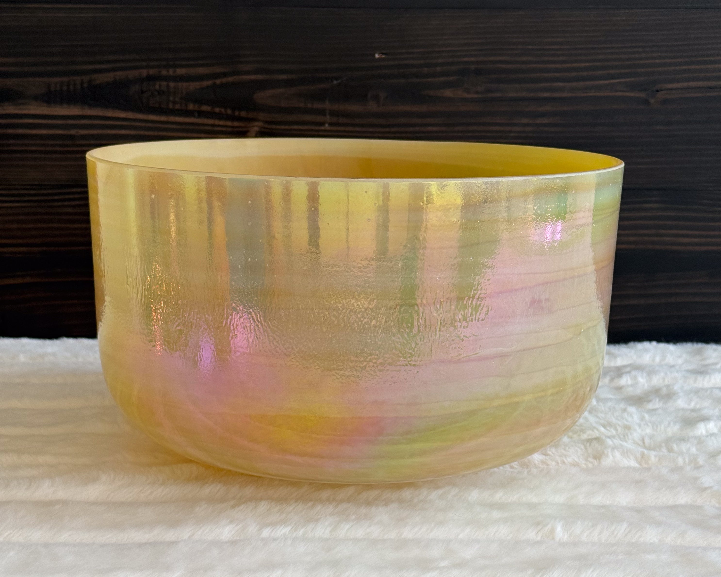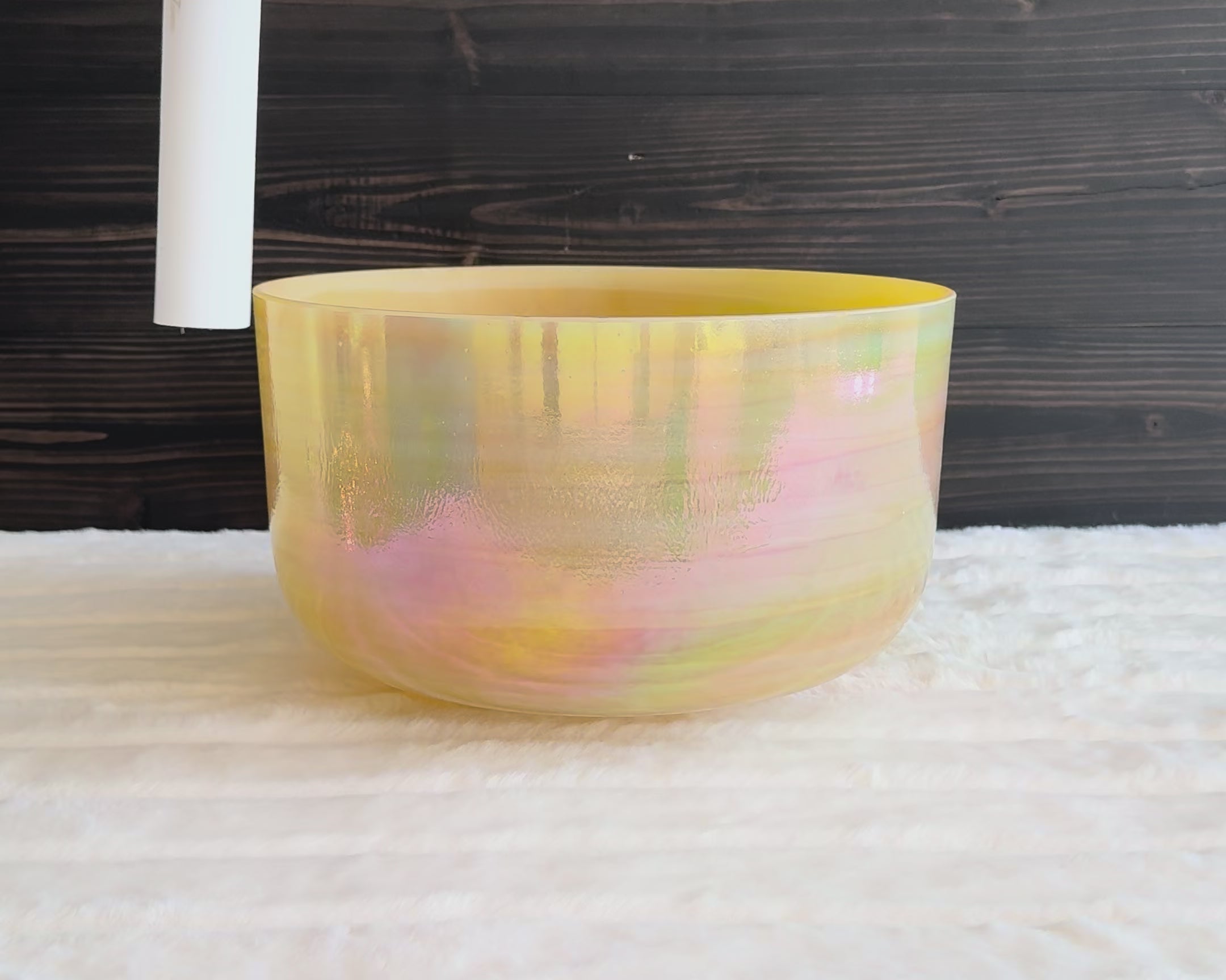 Crystal Tones® Alchemy Crystal Singing Bowls® are the most elegant, ethereal crystal singing bowls on the market. They are smaller and lighter than the more conventional frosted white crystal singing bowls with their 99.995% pure crystal structure infused with other precious gemstones, metals, and minerals. Their patented fusion technology that allows them to meld these elements together not only enhances the inherent energetic properties of the crystal singing bowls, but also adds an additional beauty and unique artistry that is like no other crystal singing bowls you can find elsewhere.