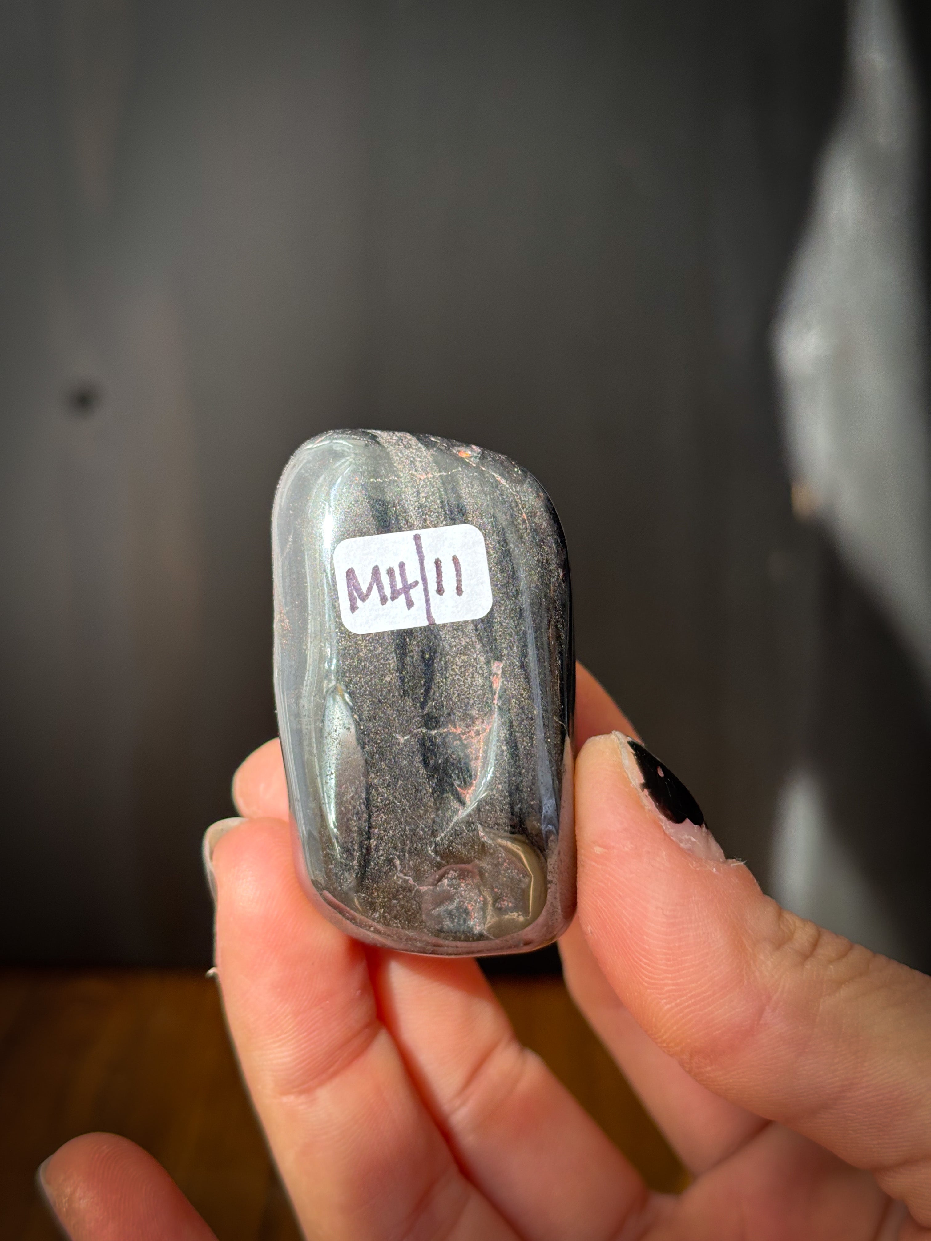 The code in the product title is our reference code for this stone. We use our hands or a coin for scale in the photos.