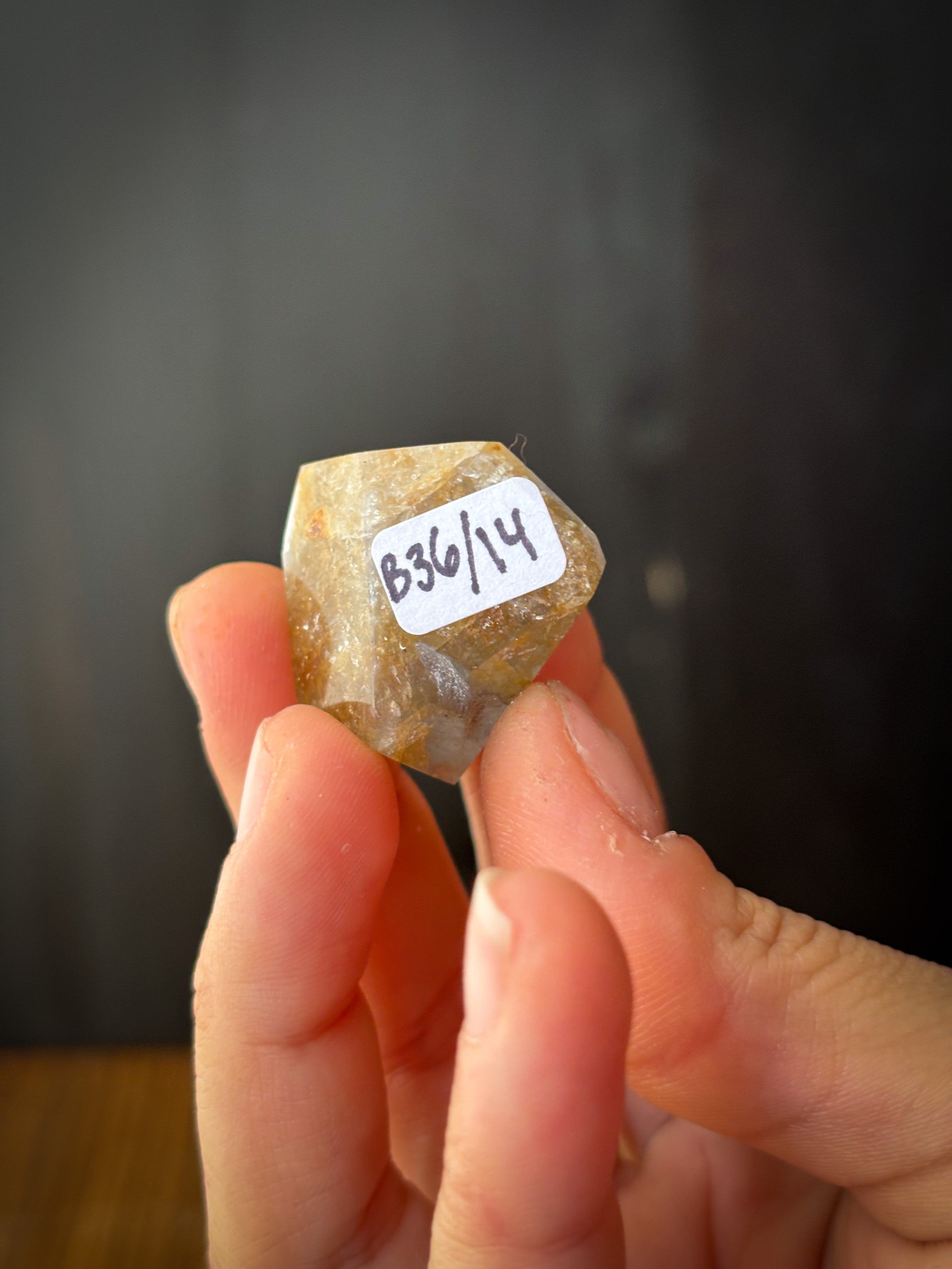 The code in the product title is our reference code for this stone. We use our hands or a coin for scale in the photos.