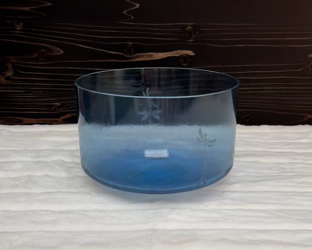 9" D+15 Indigo w/Etched Dragonflies Transcendent Bowl Crystal Tones® Alchemy Singing Bowl