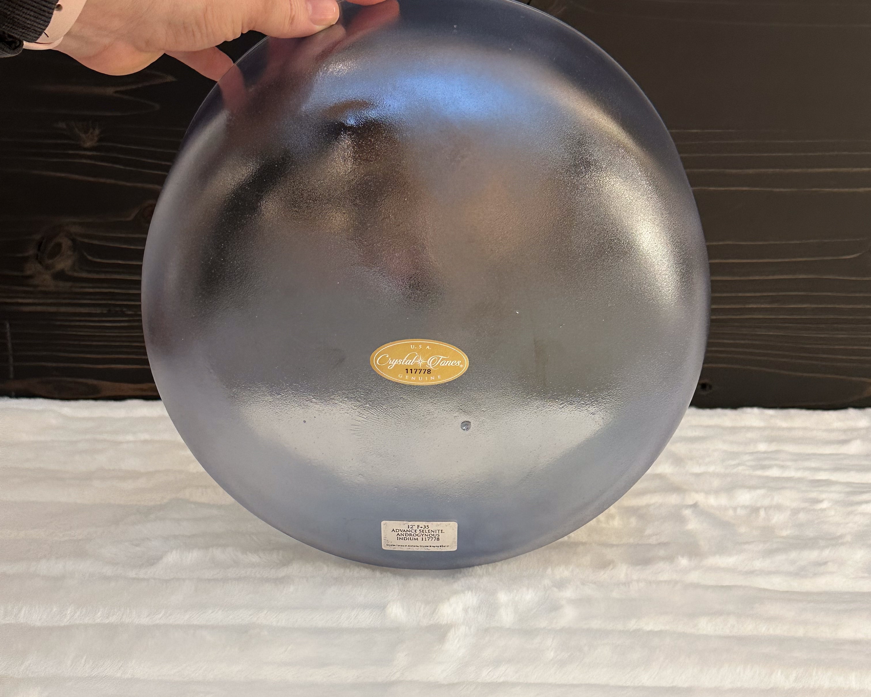 12" F+35 Advance Selenite, Androgynous Indium Bowl Crystal Tones® Alchemy Singing Bowl