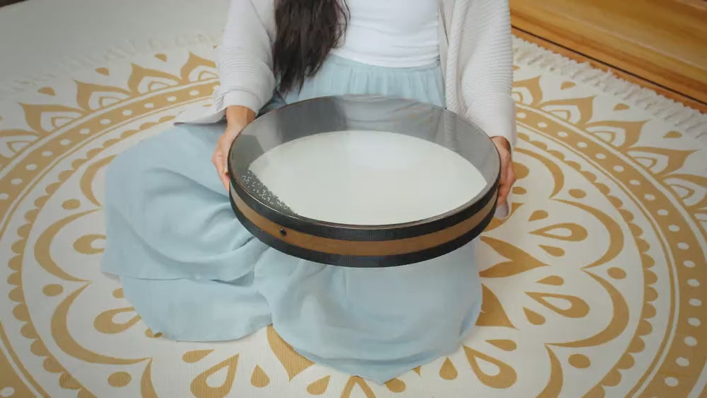 Hold the instrument flat and move it gently from left to right to enjoy the beautiful ocean sounds. You will immediately feel like you are on sea vacation. The Wave Drum is perfect for meditation, yoga, relaxation exercises, sound healing sessions, and as a percussive effect instrument.