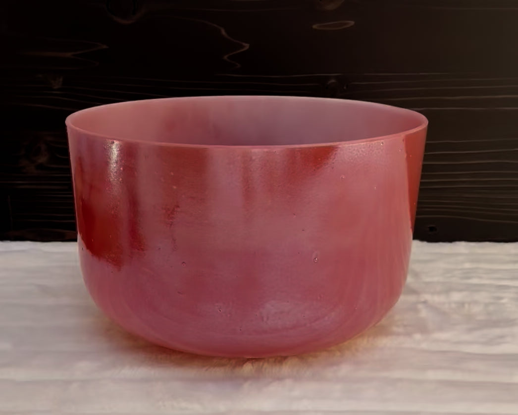 12" E-10 Rose Quartz, White Light Angel Gold, Frosted (Inside) Bowl Crystal Tones® Alchemy Singing Bowl