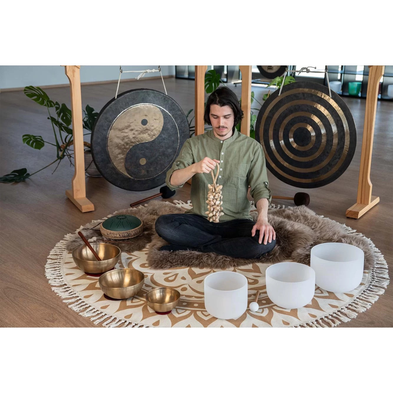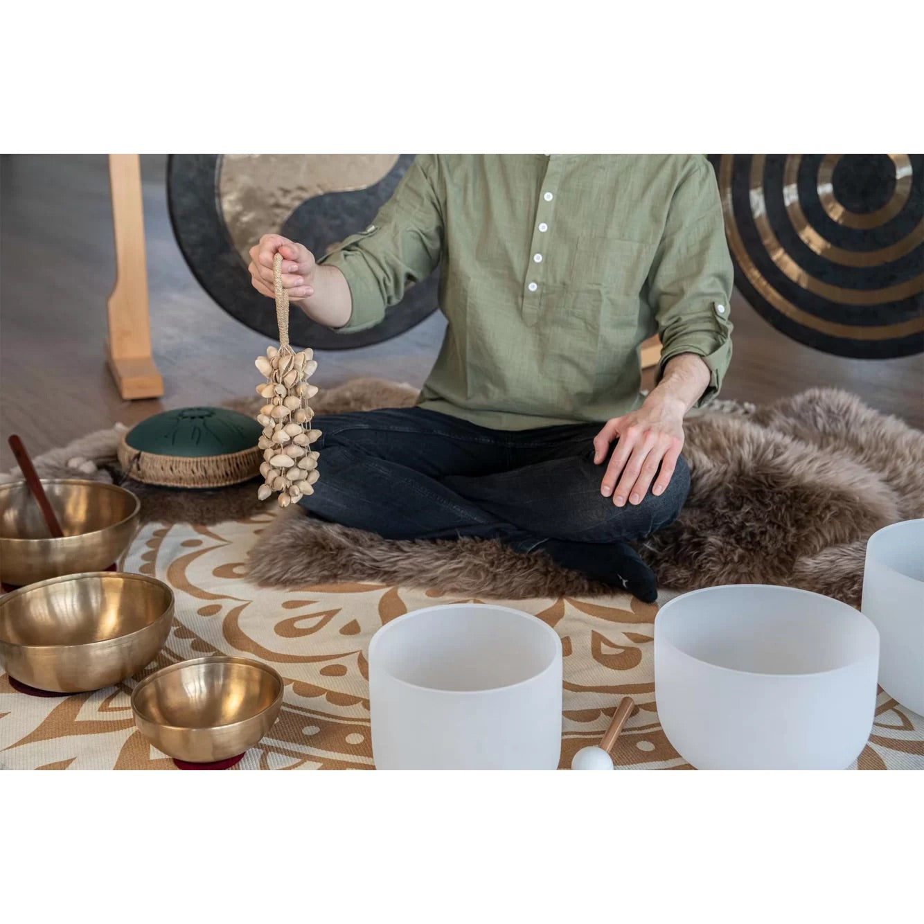 Kenari seed nutshells, attached to a wrist strap, create a unique, versatile instrument.