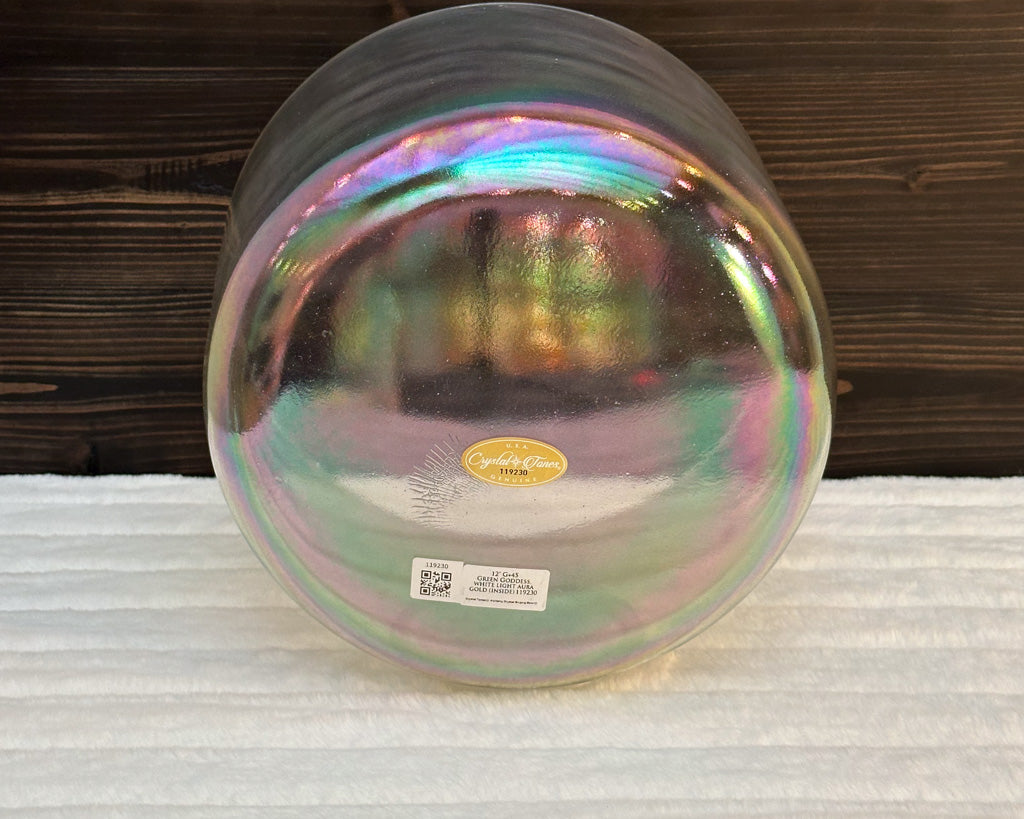 12" D+45 Green Goddess, White Light Aura (Inside) Crystal Tones® Alchemy Singing Bowl