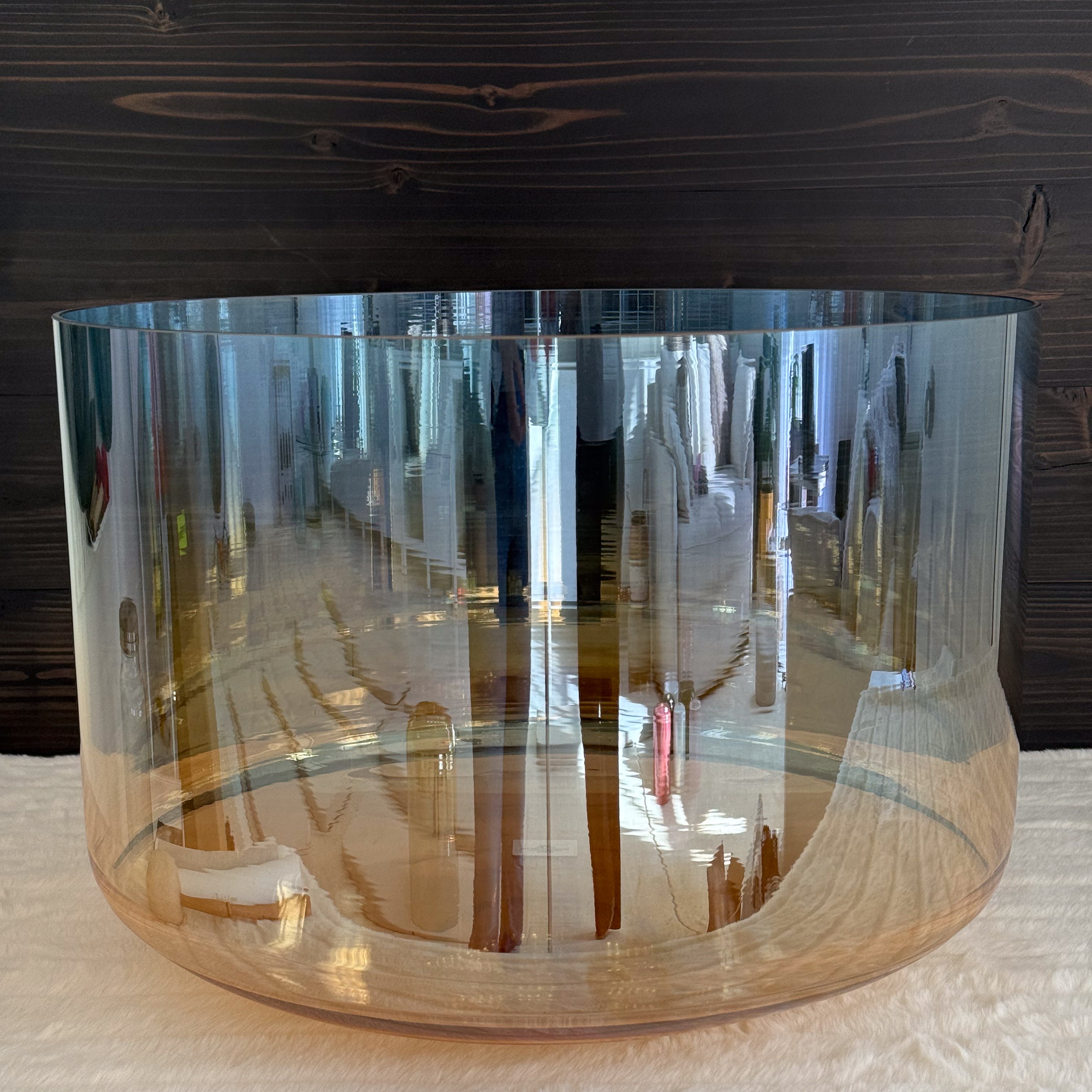 This exquisite 18" Supergrade Bowl unites the grounding and ancestral power of the Grandmother alchemy with the luminous clarity of Aqua Aura Gold at the rim. Grandmother is the wisdom keeper holding stories, traditions, and the strength of generations. Her frequency is deeply rooted, offering comfort, protection, and an invitation to slow down and listen.
