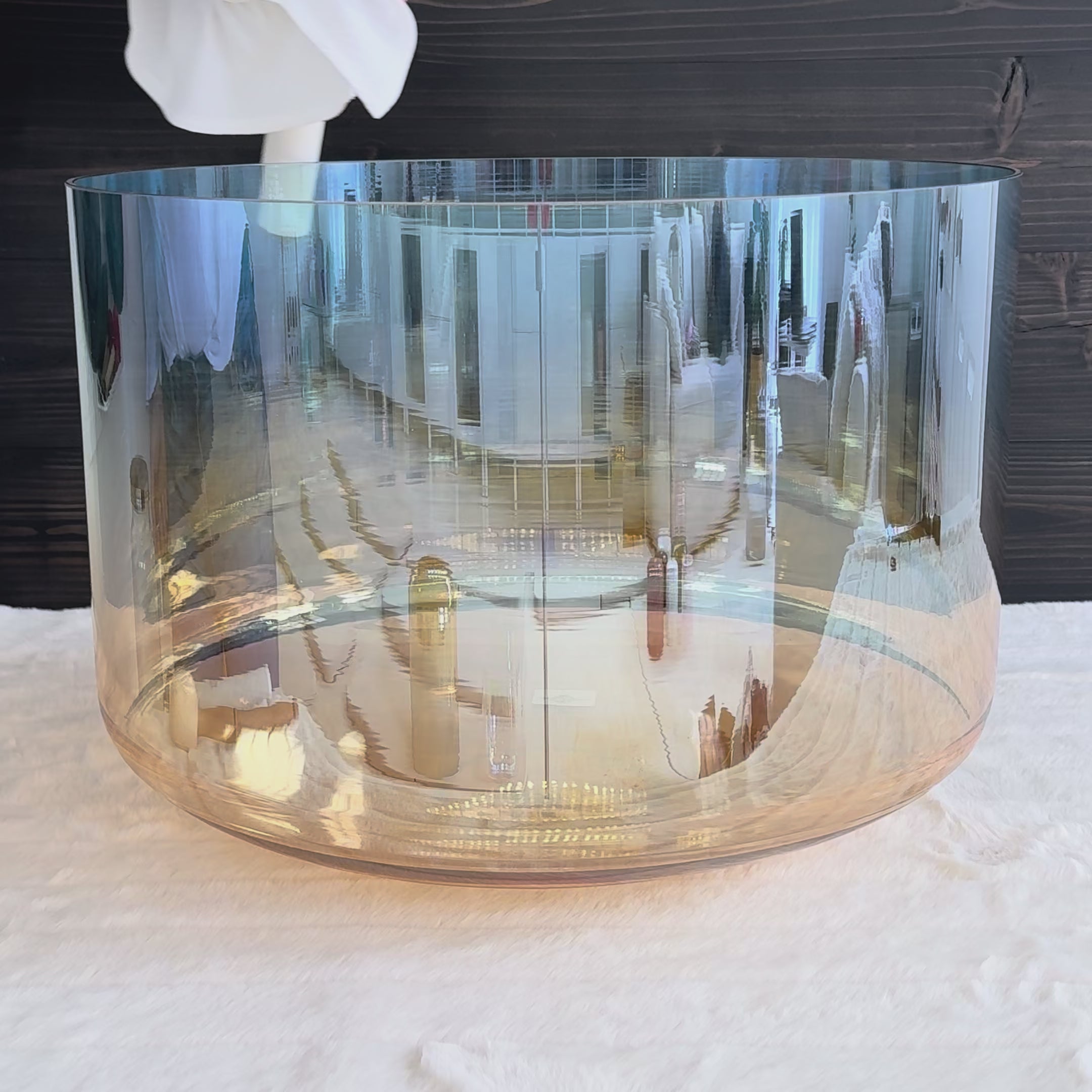 Crystal Tones® Alchemy Crystal Singing Bowls® are the most elegant, ethereal crystal singing bowls on the market. They are smaller and lighter than the more conventional frosted white crystal singing bowls with their 99.995% pure crystal structure infused with other precious gemstones, metals, and minerals. Their patented fusion technology that allows them to meld these elements together not only enhances the inherent energetic properties of the crystal singing bowls, but also adds an additional beauty and unique artistry that is like no other crystal singing bowls you can find elsewhere.